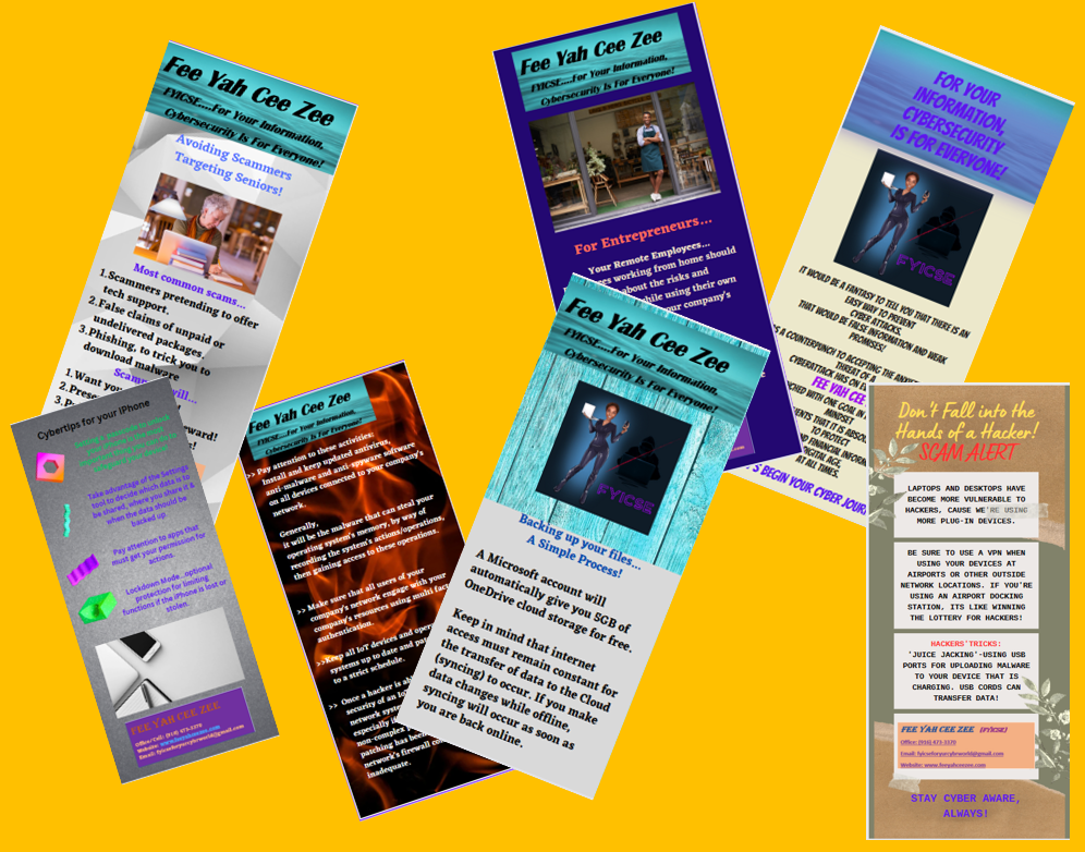 Our consultation agency delivers the messages of some of the resources we offer like the Cyber Tips, in audio/video format for your alternative learning style. As we are interested in enhancing your cyber awareness for a better online security footprint through everything that you do using a network, we’d like to direct you to YouTube > @FYICSEFeezy.